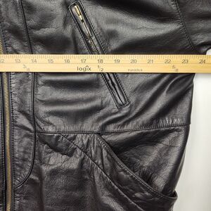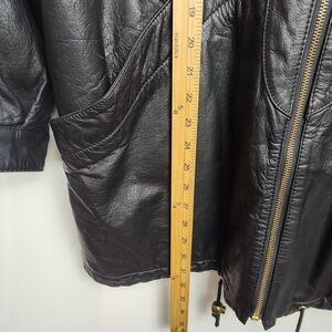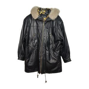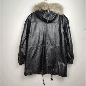 Jacqueline Ferrar Genuine Leather Parka Coat Women's M Black Hood w/ Coyote Trim