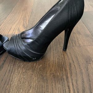 Step into sophistication with Jacqueline Ferrar's black heels, designed to elevate your formal attire. These elegant shoes feature a timeless silhouette, perfect for business or special occasions. Crafted with attention to detail, they offer a polished look that complements any outfit. Worn only once, smoke and pet free home.