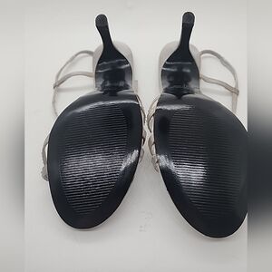 Jacqueline Ferrar Silver High Heel Shoes Rhinestones Open Toe Size 6.5 M. New