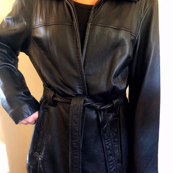 Medium petite, super soft, immaculate (like new) condition vintage Jacqueline Ferrar "Mermaid" lambskin leather jacket with front zipper and tie in jet black.