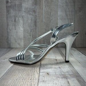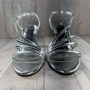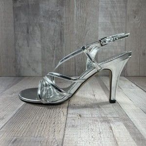 Jacqueline Ferrar Women's Strappy Ankle Strap Sandals High Heels Silver Size 7.5