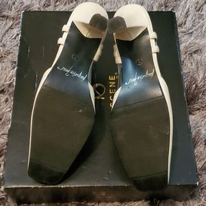 Beige close toe Jacqueline Ferrar heels. Very comfy for work, church or evening out. Zip on the inside with straps on around the ankle. Worn once still brand spanking new!!