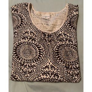 Jacqueline Smith Women’s Brown And White Short Sleeve Top Size XL Cotton Blend