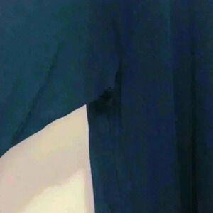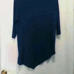 this is a Jacqueline Smith size medium Emerald blue with rhinestone accent neck asymmetrical 3/4 sleeve top. business casual great for lounge or dinner, comfy super soft
