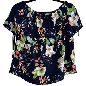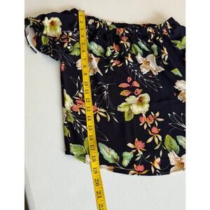 Jacqueline de Yong by Only Blouse Top Women 36 US Small Floral Pleated Ruched Sleeve Black Short sleeve Cottagecore Prairie Peasant Whimsigoth