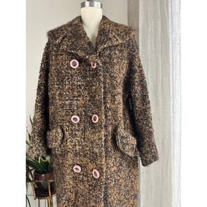 Jacqueline’s Ferrar of California Women's Large Coat Brown Black Tweed Longline