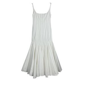 Jacquemus 'Agave' White Cotton Dress Size FR 34/US 2: featuring thin straps, an invisible back zipper, square neckline with thin straps, and sewn pleats at the hips for a fitted effect.