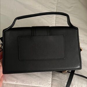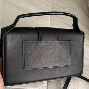 Black bag by Jacquemus. Features a structured design with a top handle and crossbody strap. Price reflects authenticity