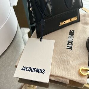 New with tags The Jacquemus Black Mini Bag is a sophisticated accessory featuring a structured silhouette and elegant gold-tone hardware. Crafted from high-quality leather, this bag combines contemporary style with timeless elegance, making it a versatile addition to any wardrobe.