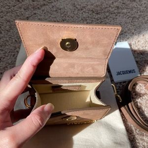 Brand new Jacquemus Le Chiquito mini bag . This is a cute and adorable that wraps around you across the body. It is gorgeous rich brown suede. Comes with strap, tag, and dust bag.