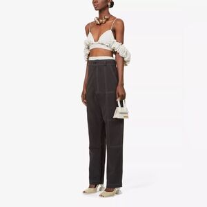 Elegant Jacquemus trousers in dark charcoal. Features subtle detailing and a sleek design.