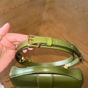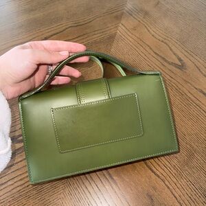 Jacquemus 'Le Grand Bambino' Bag in Khaki Green. Very beautiful color and style. Gently used. No scratches or marks however there’s slight creasing that naturally happens when you open and close the bag. Holds a lot for a small bag. Can be worn with strap or held without it.