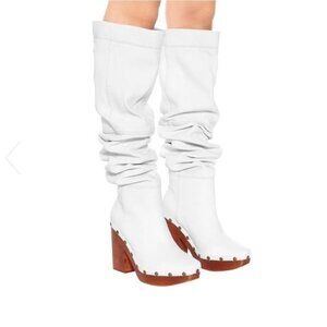 Jacquemus Les Bottes Sabots Hautes Over-the-Knee Boots White Leather Clog Heel US7 NIB