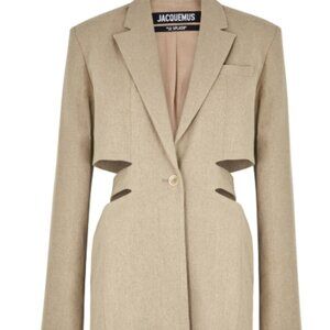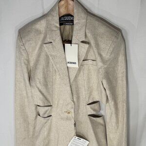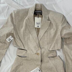 Jacquemus new with tags cutout blazer minidress. La Robe Bari light beige. Size 34 European/US XS. Tan linen. Amazing quality. Waist buttons in back, hidden button line down front. cropped look with tailored waist. Legendary brand for tailoring. all tags on