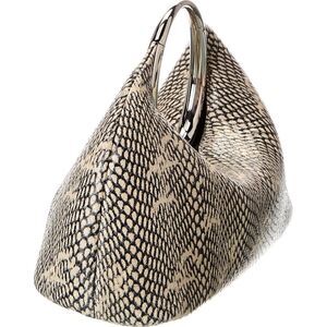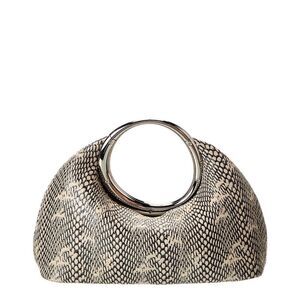 About the Product: Small Snake-Embossed Leather Clutch with Ring Handle Color/Pattern: Beige Magnetic Closure Silver-Tone Hardware with Ring Handle Canvas Lining Rounded Silhouette Snake-Embossed Leather Made in Italy Size & Fit: Measures 8.8 inches wide x 6.4 inches high x 3.3 inches deep Top handle drops 3 inches All measurements were taken by hand and are approximate; slight variations may occur About the Brand: An accessible luxury brand cultivating new luxury. Please Note: Our products are 100% genuine. In some cases we purchase merchandise from trusted independent suppliers and not directly from the brand owner. In all cases we stand by the authenticity of every product sold on our site.