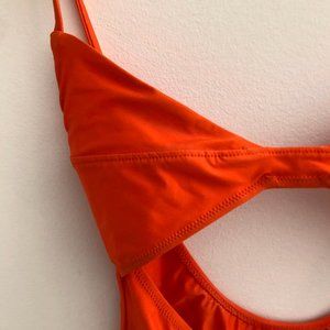 This is a gorgeous swim suit in a very rich orange color. It would be great on the beach or even as resort wear under a skirt or pants. I loved it but it just doesn't fit me exactly right