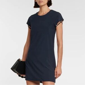 This elegant navy dress features a stylish open-back design, perfect for any occasion. The deep blue color adds a touch of sophistication to your wardrobe.