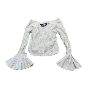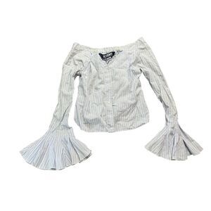 • Features: Off-shoulder neckline, button front, dramatic bell sleeves