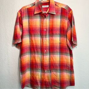 Jacques Britt Plaid button-down casual shirt. Short sleeve. Medium.
