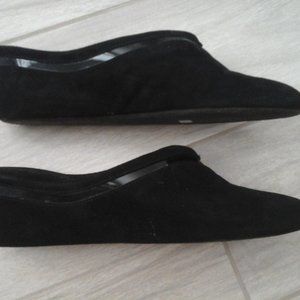 Jacques Levine Black Suede Slip On 2 1/4 in Wedge Heel Slipper. Size 8 B
