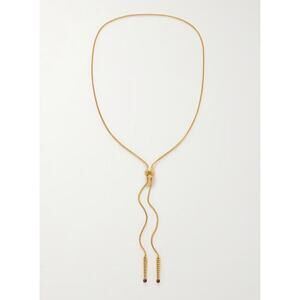 Jacques Marie Mage teamed up with Texas-born model, Erin Wasson, to create this bolo-inspired necklace - an iconic style of the American West. Made from gold-plated metal, it has a slim chain adorned with an adjustable slider and tiger’s eye-embellished pendants sculpted to resemble rattlesnake tails.