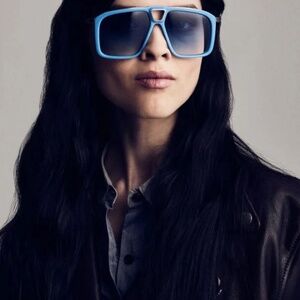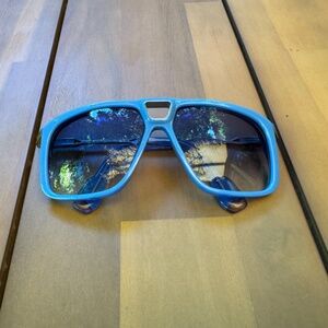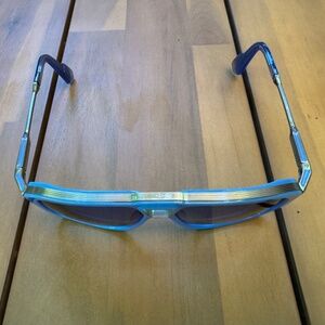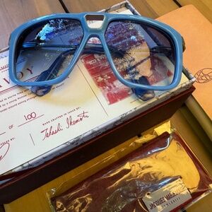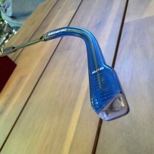 - Blue acetate and titanium frame with custom temple tips