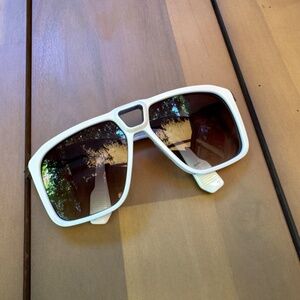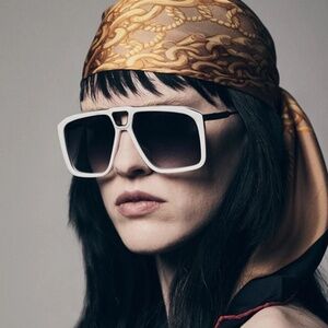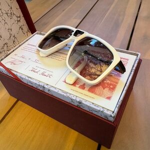 - Matte White acetate and titanium frame with custom temple tips
