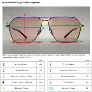 Jacques Marie Mage x Evangelie Smyrniotaki "Stellar" Rose Gold Titanium Sunglasses with Bubblegum CR39 Lenses. Ltd Ed of 150 produced worlwide. Kept in a display case and I did try them on a few times inside the house. There are fine scratches at the top of the frame and bottom of the frame where the glasses rest on a flat surface; very minor. I didn't even notice them until I went to create this listing and take pics, so I am not sure if this is from the display shelf, moving around in the case (there are indentations in the faux velvet lining of the case), or if they came to me like this from the store I purchased them at. See last pic. Comes with black limited edition hard case, burgundy case cover, a black JMM box, microfiber cloth, card with product #, owner registration QR code & JMM care booklet. More info below. The black/white stock pic is of these same glasses with the black frames, so you can see how these would fit. Authenticity guaranteed. This item's unique number # removed in pictures for buyer security. Photos on models are stock photos; all other pictures are mine and of the actual item you will receive.