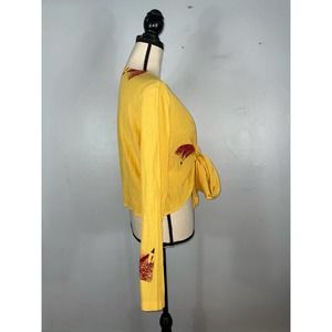 Jacques Ruc Yellow Tie Open Front Blouse Size: 1 / XS