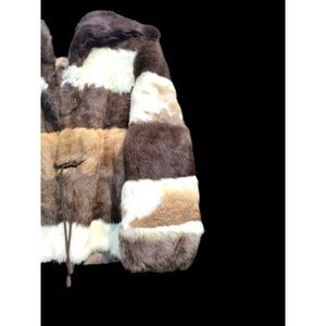 Jacques Saint Laurent Women's (XL) Tricolor Rabbit Fur Jacket (1970s) For Repair