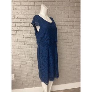 Jacques Vert Collection Navy Floral Lace Overlay Sheath Dress Size 12