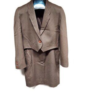 Jacques Vert Pure Wool Cropped Blazer & Skirt Suit 2-Piece Sz 8 Made in England