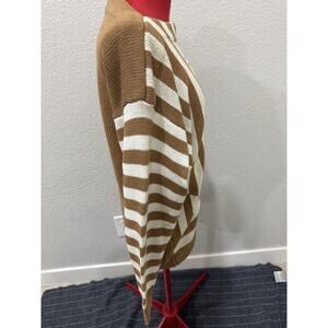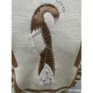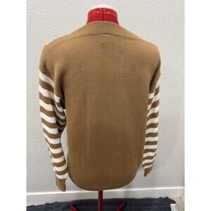 Jacques Vert Vintage Camel Brown White Stripe Jewel Peacock Knit Sweater Sz 2