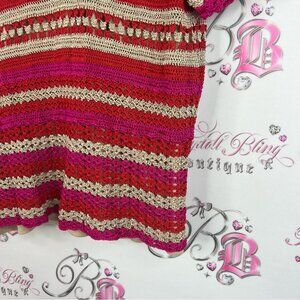 Elevate your style with this stunning knit blouse featuring vivid pink and cream stripes. Perfect for adding a pop of color to your wardrobe. Large.