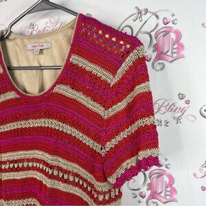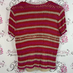 Jacques vert crochet tshirt Beautiful Vivid Pink and Cream Striped Knit Blouse
