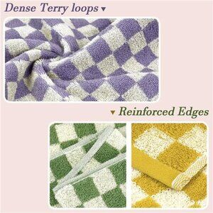 🧿Checkered Towels for Bathroom: Package included 4 checkered hand towels are yellow, green, orange, and purple. Use for the whole family, and not easy to confuse