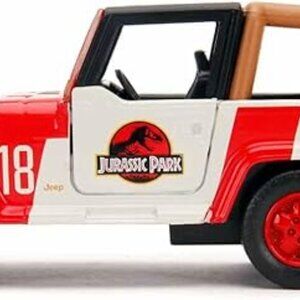 Bring home a piece of movie history with this **officially licensed** diecast model of the iconic **Jeep Wrangler #18** from *Jurassic Park*, styled in red and beige as seen in *Jurassic World*. Crafted by Jada Toys, this detailed 1/32 scale model is perfect for collectors and fans alike.