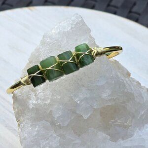 Jade 4-Stone Wire Wrap Cuff โ 14Kt Gold Over Copper โ Wisdom & Balance Talisman