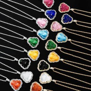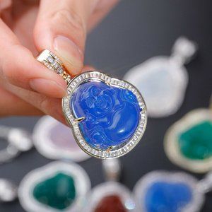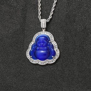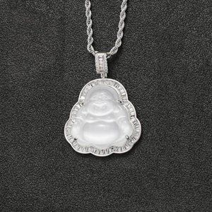 Jade Buddha Pendant Necklace Chain 24K Gold Filled Maitreya Craved Free Shipping
