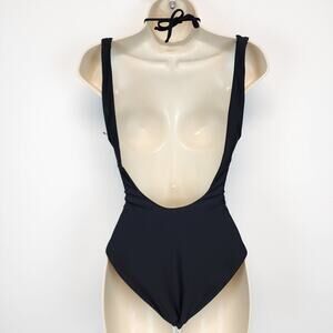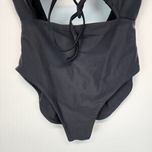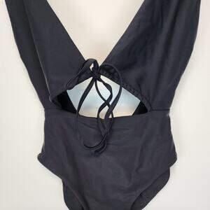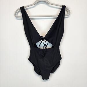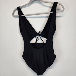 Jade Cava One Piece Black Swimsuit Size M Cutout Tie Front Low Back Beach Vaca