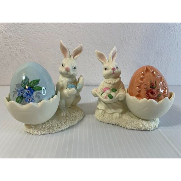 Jade Collection Ceramic( PAIR )of Bunnies Easter Spring Decor Figurines