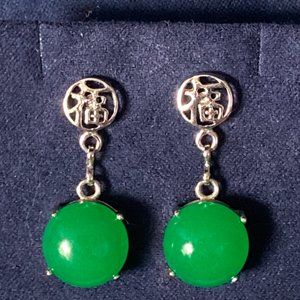 Jade Earrings Set in Sterling Silver with Chinese Writing