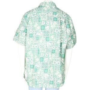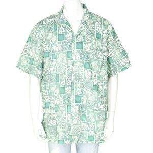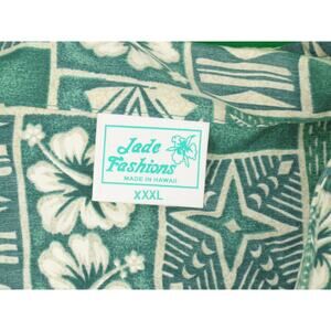 Jade Fashions Flower Floral Orchid Fish Hawaiian Aloha Tropical Tribal Camp USA Made Green Polyester Blend Shirt 3XL
