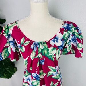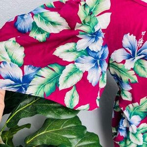 Jade Fashions Hawaiian Tropical Hibiscus Floral Fuchsia Midi MuuMuu Dress