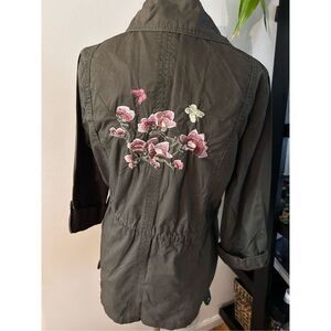 Jade & Ivory Boho Shabby Chic Army Green With Floral Embroidery Utility Jacket s