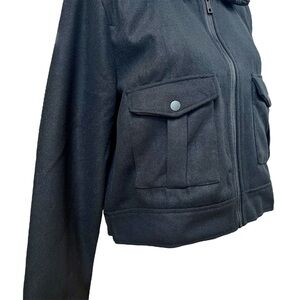 Jade & Ivy Black Faux Suede Coat fully lined with Faux Fur Collar, front pockets, snap cuffs, and adjustable snap waist. Size M - NWT