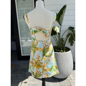 Jade Melody Tam Floral Designer Beading Vacation Summer Tie Back Mini Dress $200