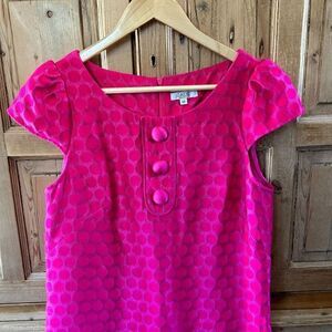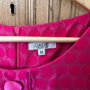 Jade Melody Tam Medium Dress Pink Polka Dot Shift Knee Length Zip Pockets Button