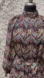 Colorful JADE MELODY TAM, PEACOCK MAXIE DRESS Size XS. Features a mix of black, pink, and green.CHEVRON PRINT, RUCHED COLLAR WITH TWO BACK BUTTONS, LONG PUFF SMOCK CUFF SLEEVES. HAS A LINING, PRAIRIE, COTTAGECORE, BOHO, NEW WITH TAG:
