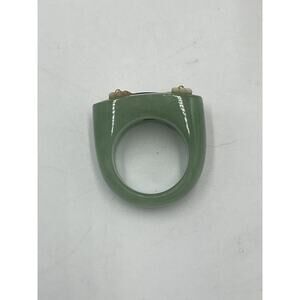 Jade Natural Icy Green Jadeite and MOP Flower Saddle Beautiful 14k Ring 7.5-8